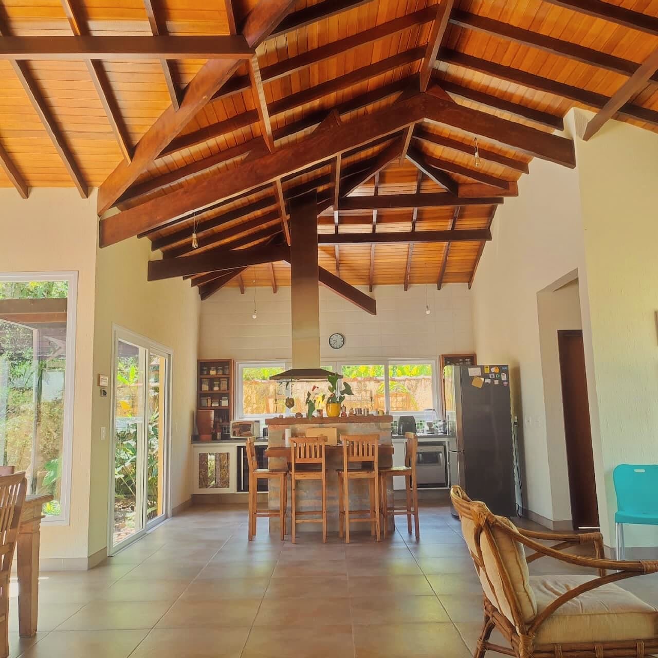 O pé direito alto, outra premissa do projeto, dá o toque de paz e harmonia