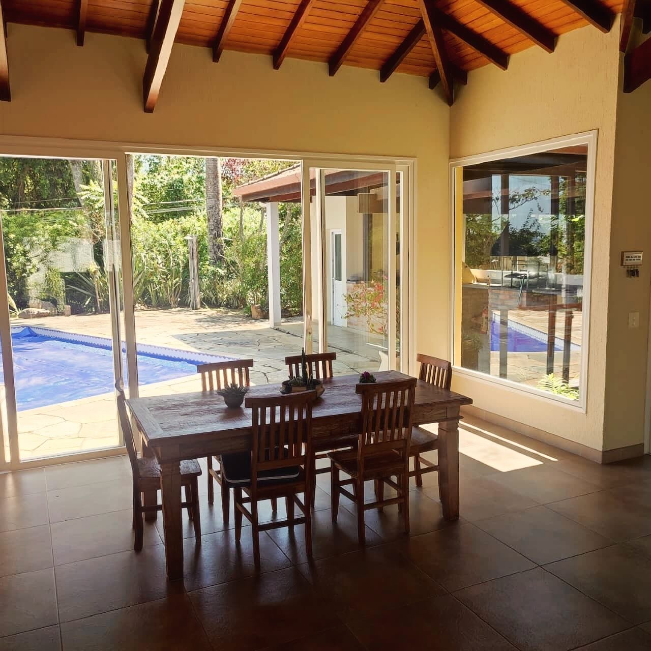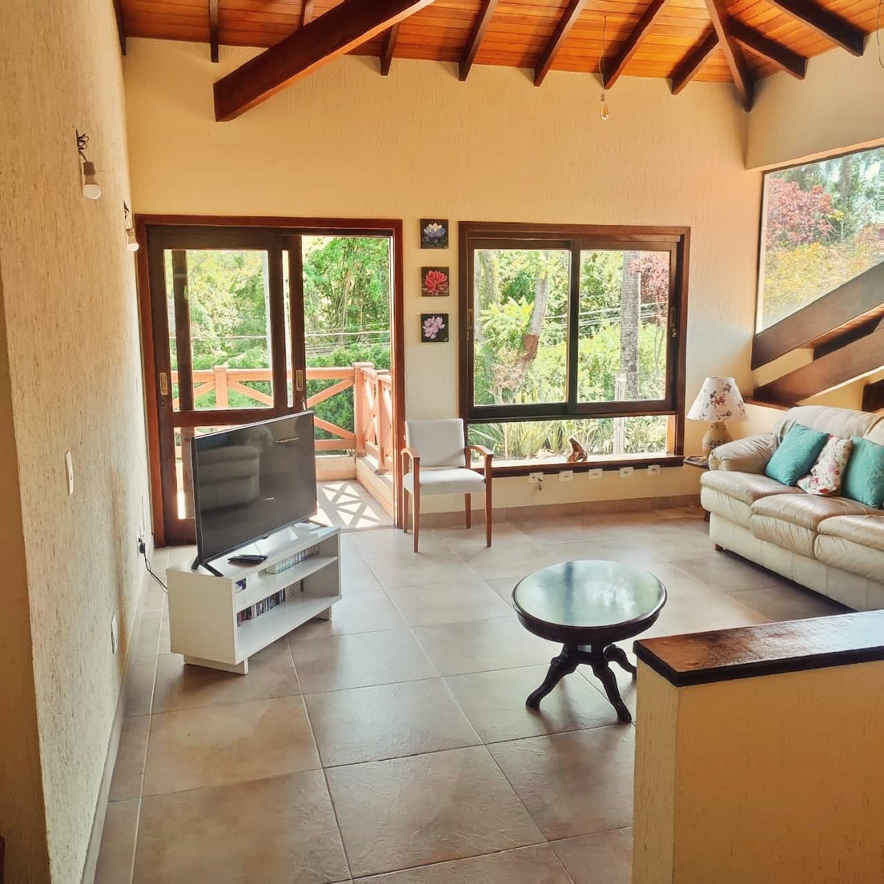 O conforto da casa é completado com a paz de uma extensa área verde externa